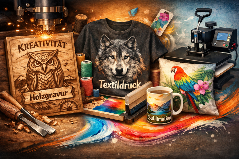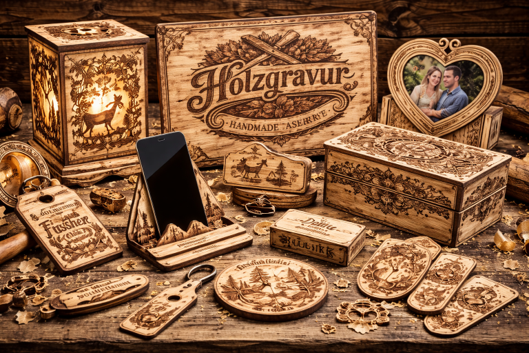 Gestalten Sie Ihr ganz persönliches Geschenk mit meinen hochwertigen Holzgravuren, Sublimationsdruck, Textilveredelung und mehr!